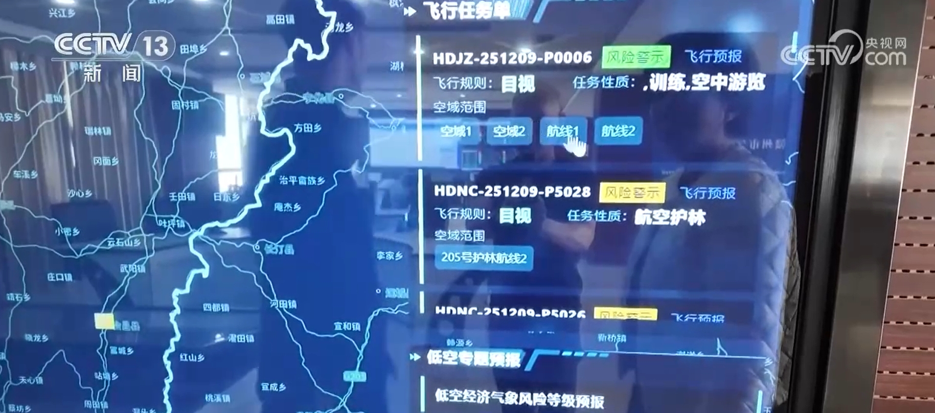 赣州市气象台副台长 张帆: 无人机飞行对它影响最大的就是怕突然遇到一阵强风,或者突然遇到一阵短时的雨。我们在了解到这种情况之后,就到达了他们的飞行基地展开调研,并且把我们的低空飞行的(气象)服务平台接入到了他们的服务中心。